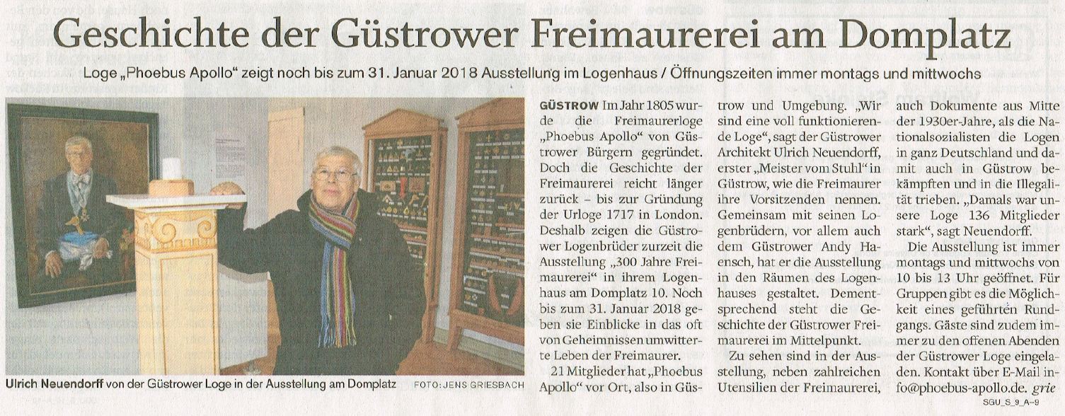 Freimaurerausstellung der JL „Phoebus Apollo“ vom 01.11.2017 bis 31.01.2018